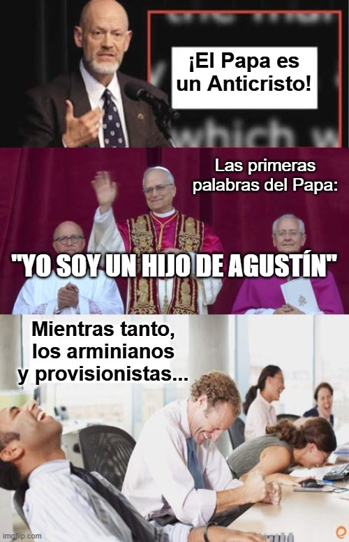 Como también dice el académico de Oxford, el Dr. Ken Wilson, “Las ideas deterministas de Agustín no surgieron del apóstol Pablo (un fariseo que creía en la libre elección) sino de Mani quien limitaba la salvación solo para los elegidos y enseñaba que la humanidad es totalmente incapaz de responder a Dios y despojados de libertad de elección…La teología reformada moderna defiende sus posturas utilizando los mismos pasajes bíblicos claves que utilizaban los herejes maniqueos y fue Agustín el que las metió en el cristianismo…Agustín llevó por mal camino a Lutero y Calvino." (Dr. Ken Wilson, El Fundamento del Calvinismo Agustiniano, pp. 2, 17, 18, 125 y 133). Wilson, también afirma que, "Las primeras influencias que tuvo Agustín de Hipona procedieron del estoicismo, el neoplatonismo y el maniqueísmo, y estas determinaron su teología final. Y en su fase posterior, interpretaba las Escrituras con su filtro determinista, volviendo a sacar del pozo de las interpretaciones maniqueas precristianas...Agustín inventó los cinco puntos [monergistas] del TULIP (total depravación. elección incondicional, expiación limitada, gracia irresistible y la perseverancia de los santos )...y esto dio como resultado el término autodesignado, "calvinismo agustiniano" por el teólogo Paul Helm." (Dr. 𝘒𝘦𝘯 𝘞𝘪𝘭𝘴𝘰𝘯, 𝘦𝘭 F𝘶𝘯𝘥𝘢𝘮𝘦𝘯𝘵𝘰 𝘥𝘦𝘭 𝘊𝘢𝘭𝘷𝘪𝘯𝘪𝘴𝘮𝘰 A𝘨𝘶𝘴𝘵𝘪𝘯𝘪𝘢𝘯𝘰, pp. 21-22). Quizás los calvinistas hacen bien en identificarse como "católicos" pues su falsa doctrina vino de los católicos por lo que no es sorpresa tampoco que el nuevo papa agustino, León XIV, haya declarado que es "un hijo de San Agustín” puesto que tanto el filósofo católico, Agustín de Hipona, y su doctrina soteriológica es romanista.