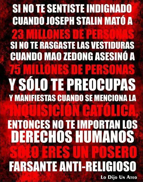 Claro, nunca falta el ateo adoctrinado que diga que las muertes causadas por los regímenes comunistas se debía por razones políticas y no ateístas.