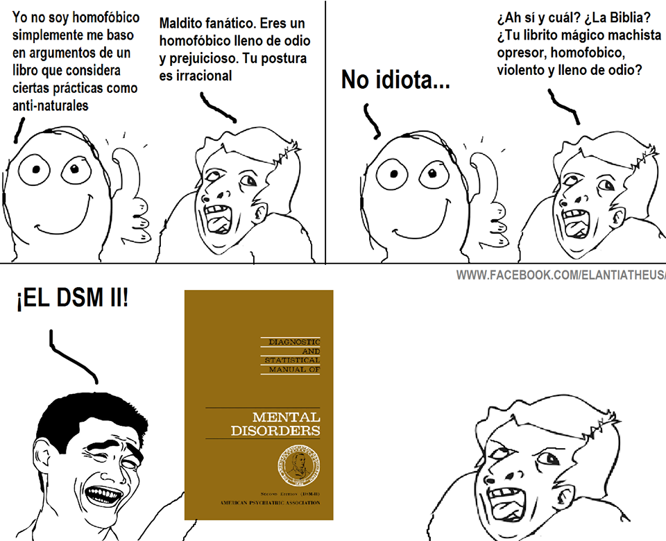 En fin, la popular frase que tacha de enfermos mentales o anormales a los “homofóbicos” es un ejemplo de proyección psicológica. No son los heterosexuales los que padecen de trastorno de identidad sexual sino los homosexuales. No es malo usar la imaginación siempre y cuando sepas diferenciar entre realidad y fantasía. Una chica anoréxica que se cree gorda pero que en realidad esta flaca o esquelética es un desorden psicológico. Lo mismo se puede decir de la homosexualidad pues ambos casos niegan la realidad biológica. De hecho, los psicólogos solían estar de acuerdo de que el transgénero era una enfermedad mental llamada disforia de género, no un acto de valentía o libertad. La homofobia tampoco existe y aun si existiera la persona mas homofobica sería aquella que se mira en el espejo y no acepta como Dios lo hizo u odia el sexo con el que nació.